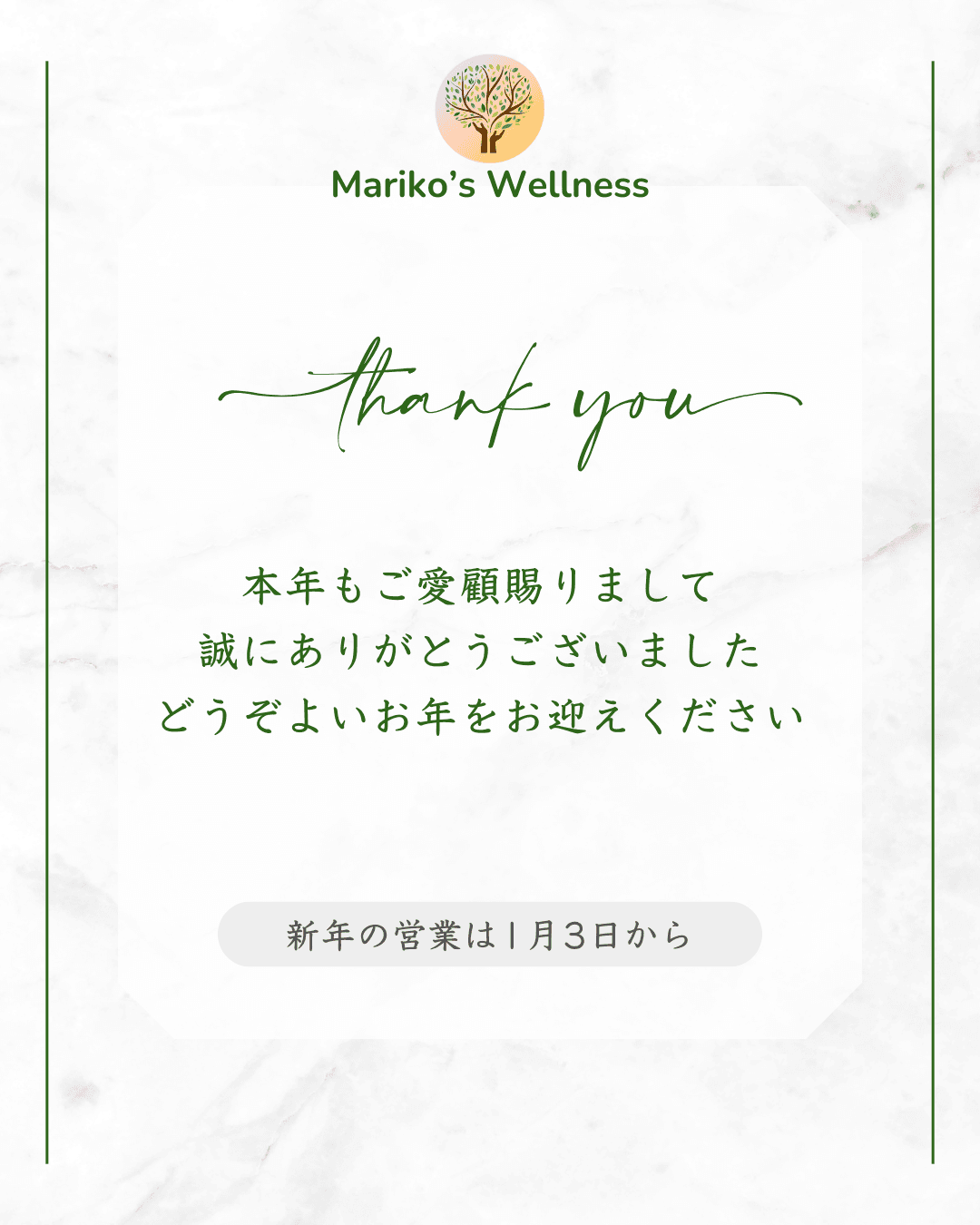 2025年も、Mariko’s Wellnessをご利用いただき、誠にありがとうございました。