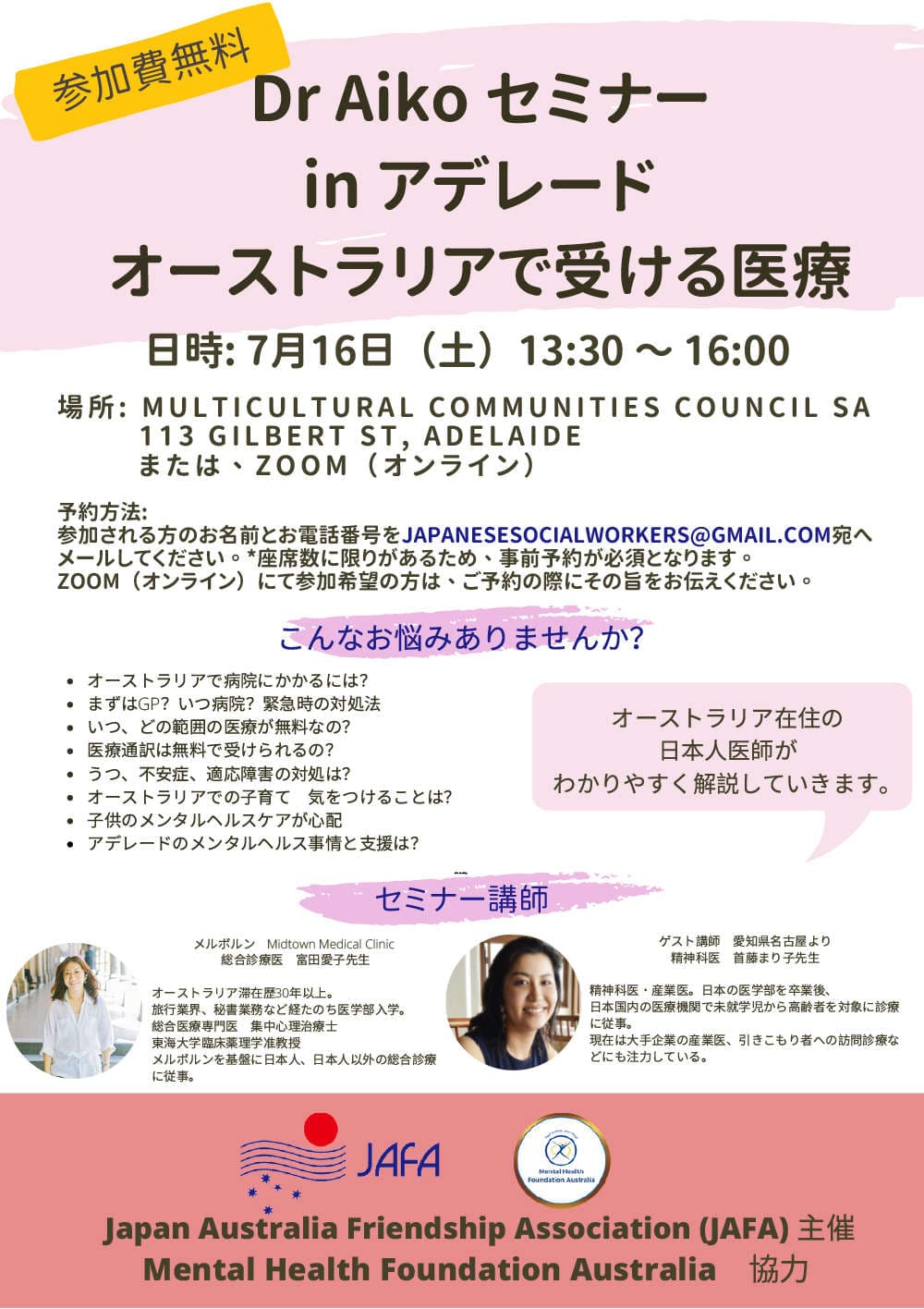 【Dr Aiko によるセミナー & 個別医療相談会】